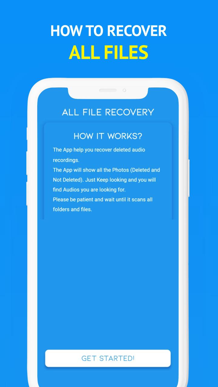 Recover deleted files, audio recording files, video files and images which you lost accidentally by deleting contacts, videos, images, audio recording files, and pdf files. Be that as it may, we give the best application on play store to join all the application and give one single application to recover all lost files like deleted video files.