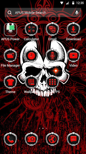 Welcome APUS's home, You can get the extended icon set of Red Evil Skull APUS Launcher Theme!