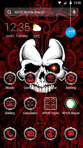 1. Red Evil Skull APUS Launcher Theme is free, but only compatible with APUS Launcher. If you want to apply it, please install APUS Launcher on your Android phone.