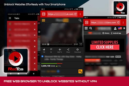 Redtob Browser gives you access to unblock websites or open favorite application blocks or open positive internet blocking with super fast and free connections, you can watch free movies blocked by your country. Can work on all networks such as LTE, 4G / 3G networks (for Tri, XL, Telkomsel, Axis, IM3) providers, WIFI (WIFI.ID) and others.