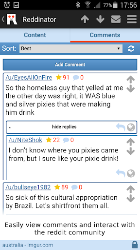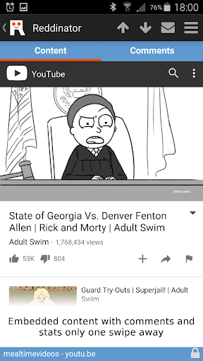 • Reddinator View combines the items content, Reddit comments page and voting buttons into a tabbed layout. Read the article and participate in Reddits great community discussion at the same time!