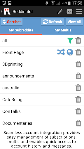 • Search & subscribe to new Subreddits & unsubscribe from the stale ones