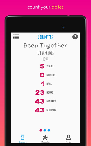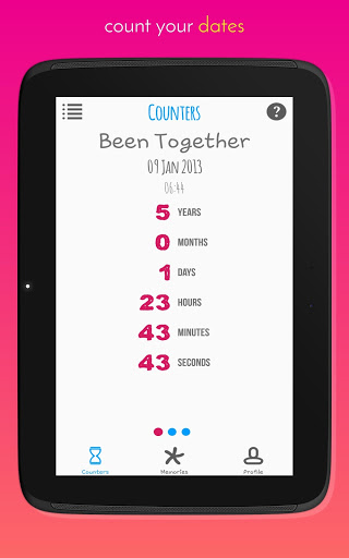 Set your meeting, starting relationship, marriage day or whatever you want and than application calculates passing time for you. You can see every seconds.