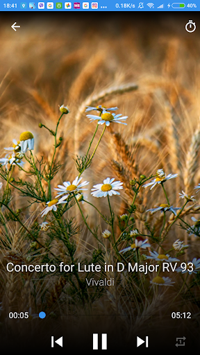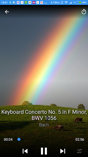 The app has timer, you can set it and go to sleep, the music will be stopped automatically. The app has shuffle mode to play music in random order and repeat mode to play the same song again automatically.