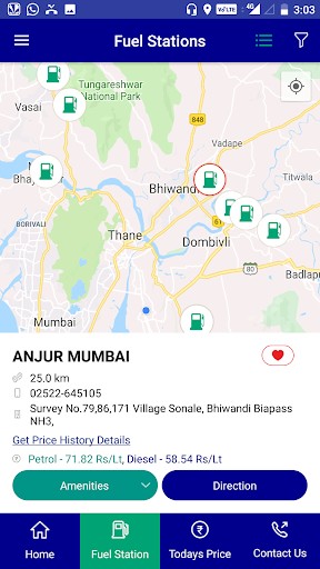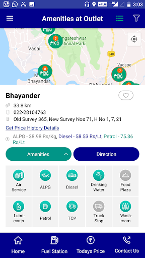 Know the latest price of fuel at any outlet even before reaching one, your journeys get economical and easier. Click on any fuel station and you are provided with the price of Petrol, Diesel and AutoLPG.