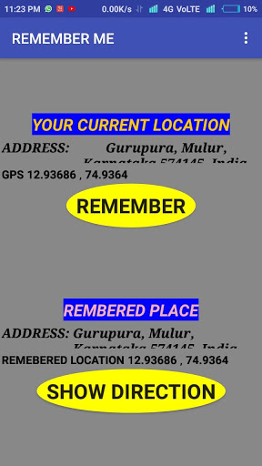 * You have to click on the "REMEMBER" button so that it will show your current locations and in case if you forget your locations you can click on the "SHOW DIRECTION" button it will show your path to the previous location.