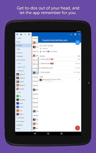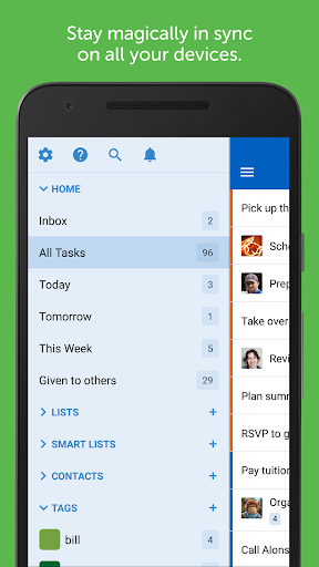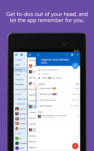 • Organize the way you want to with priorities, due dates, repeats, lists, tags, and more