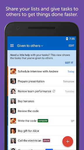 • Share your lists and give tasks to others to get things done faster