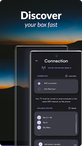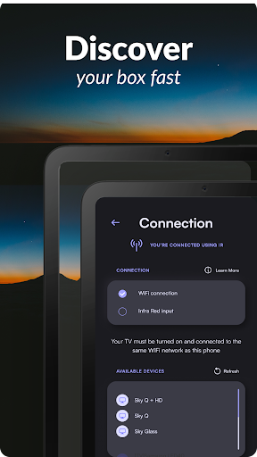 ◆ How Can I control my Sky device remotely? To add a supported Sky set-top box, you can either let the universal sky remote application scan for a sky device in your local network, or you can manually enter the details for your Sky HD, Sky Q, Sky Glass, and other supported Sky devices. Once you establish the connection, you can use your Android device as a smart Sky remote control for all of your connected Sky devices.