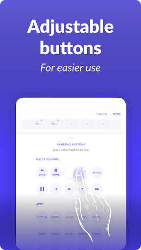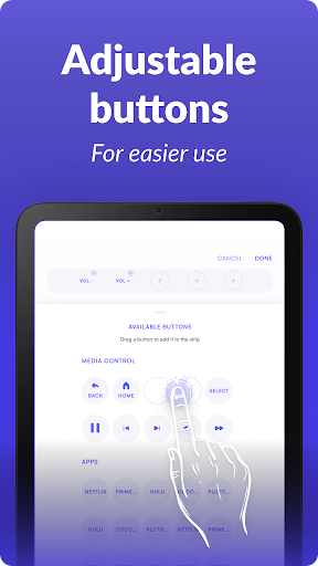 WHAT ELSE? There is a versatile touchpad screen available in this free universal sky remote control to add favorite buttons to the top strip for quicker access. There is also a TV screen to control the user’s TV set.