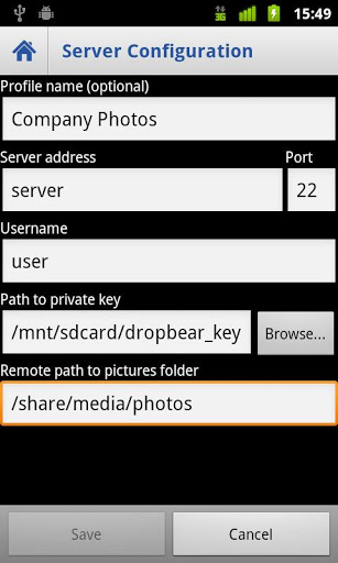 Quickly access your entire photo gallery on the go via SSHAttention: remote Gallery is intended for people who have access to a SSH server where pictures are stored.The app will be useless without the server component.Remote Gallery is an application for Android devices which connects to a SSH server where your pictures are available and downloads the images to your device.In order to save bandwidth and speed up the download, Remote Gallery optionally reduces the size of the images on the server prior to being sent. The images are cached locally on the device and are made available to other apps on the device.Configuration instructions can be found at: http:cachapa.net?pageid429Remote Gallery is open source software:http:code.google compremotegallery