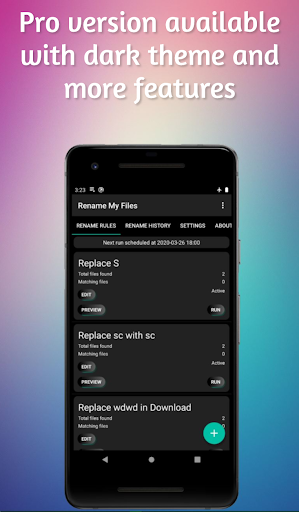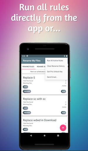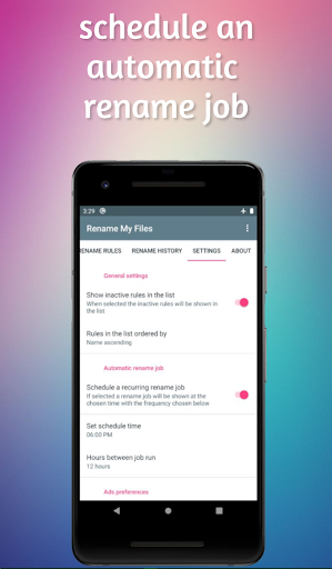 The application has a scheduler which helps you automatize the rename process. you pick the time and set from 1 to 12 hours the interval with which the active rules shall be executed. This way you just need to define the timing and all the work will be done automatically for you.