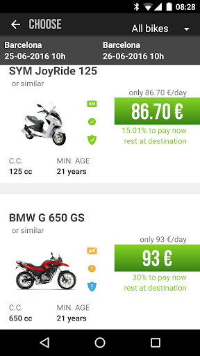 Through our dynamic filters, we can classify the bikes by their cubic capacity and by their fuel comsumption , we've also added electric vehicles to our fleet.
