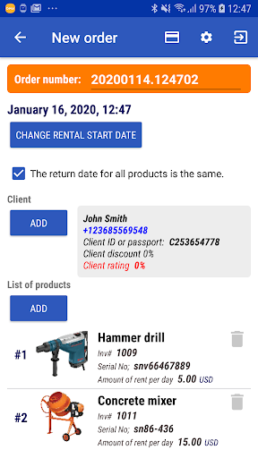 The application allows you to organize a warehouse of goods or services for renting these goods, keep records of customers and create orders for the rental of goods