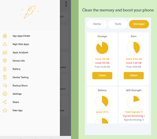 The app also contains a cleaner widget and booster Widget that you can add to your Android home screen to access with one click.