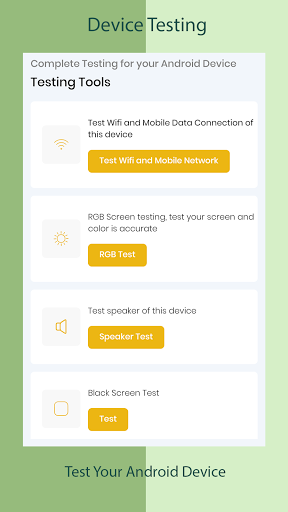 👍🏻Tests your device performances by checking Wifi health, speaker, touch screen, and more.