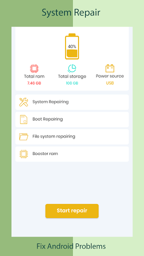 If you are searching for a great app cleaner for the android operating system or a repair system for the android app, use our system cleaner and accelerate the applications. Fix unnecessary problems, and make the system faster while keeping your data secure. If utilities for android are your needs, install this repair my phone app and increase your device's performance.