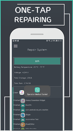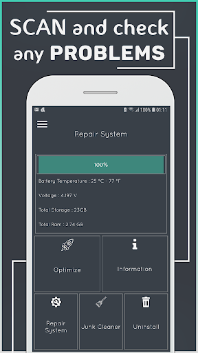 Repair System For Android is smart app like doctor for your phone, it checks your entire system and quick fix-it app to repair any problems, it so you can have a stable system and fast, it also fix errors and bugs solve the problem and insufficient space, also check your memory RAM, scan for bugs and damage files, it will boost your RAM.