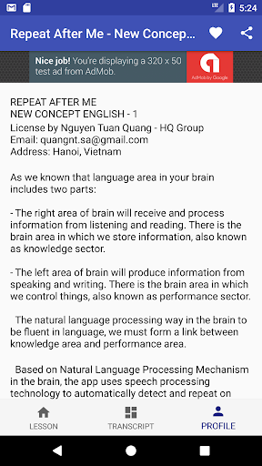 The difference of this application with other applications is that the application uses artificial intelligence technology in speech processing to disassociate each sentence of native speaker in the lesson and repeat itself.