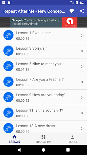 Repeat After Me - New Concept English Level 1 with 72 basis lessons include native speaker audio and transcript for learner who have elementary level.
