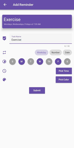Repeat Me is the cleanest, fastest, and most customize-able way to schedule notifications on your phone. With no ads or any questionable permissions, Repeat Me is the lightest and safest way to keep track of everything you need to do in your life.