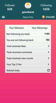 Find out who unfollowed you for Instagram, who is not following you back, detect who blocked me, view your fans, find your best friends and much more...