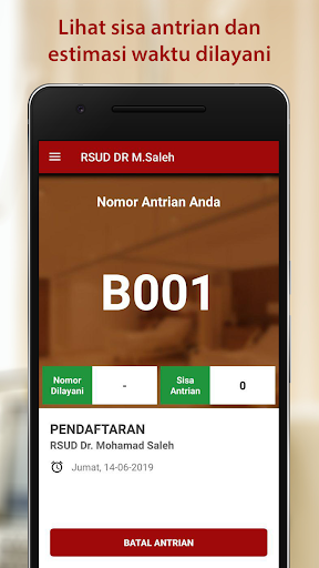 Reservasi RSUD Dr.Mohamad Saleh adalah aplikasi yang ditujukan kepada pasien yang terdaftar untuk melakukan reservasi antrian di RSUD Dr.Mohamad Saleh secara online. Aplikasi ini berjalan secara real time sehingga memungkinkan pasien untuk mengurangi waktu mengantri di rumah sakit. Pasien dapat memesan antrian melalui aplikasi dengan cara memilih tanggal dan layanan(bpjs atau umum). Memesan antrian melalui aplikasi dapat dilakukan dimanapun sehingga pasien tidak perlu lagi mengantri dari pagi. Pasien yang sudah mendapatkan nomor antrian bisa langsung datang ke rumah sakit pada tanggal yang sudah dipilih, kemudian langsung mengantri untuk menunggu panggilan loket admission.