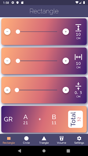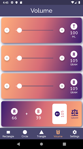 Slider two: Here you indicate the number in liquid A. The result is how much you need to add of liquid B and the total. For example if you have added too much of liquid A.