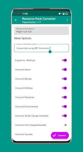 All you need to do is to pick the Zip File containing the Resource Pack, change its name or description if you wish and then just hit "Convert". The app will automatically proceed to create a playable Resource Pack for Bedrock Edition!