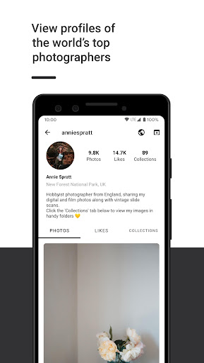 • View user profiles, curated collections, photo stats and EXIF data