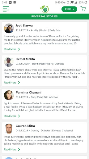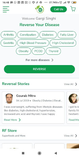 We all are aware that every family has at least one person suffering from lifestyle diseases (eg. Diabetes, Hypertension, heart disease, joint pain, asthma, overweight) which are absolutely reversible and preventable. Around 68% deaths in India are because of lifestyle related diseases, which are completely diet and lifestyle related. By downloading the application, people will be empowered and made aware that how by eating right food, we can reverse disease. We would like to help people take absolute control over their health, whether it is losing kgs or preventing and reversing lifestyle diseases.
