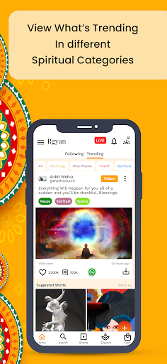 -->Discover media posts, trending Short Videos based on Spirituality, Health Tips, Festivals, Rituals, Astrology, Meditation & Devotional Content categories.