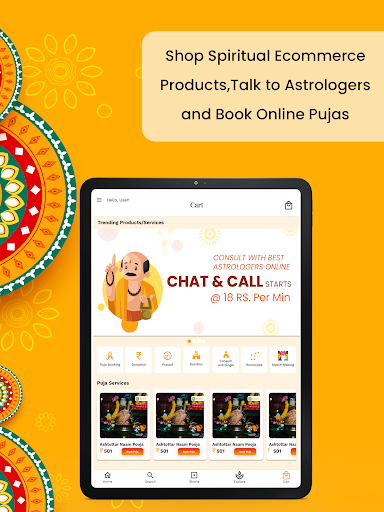 Also you can Consult with 100 astrologers, buy spiritual products and avail digital puja services.