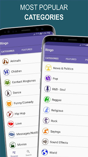 Ringo's main difference from the Zedge app is that none of our ringtones and notification sounds/tones are community generated. This allows us to better control the ringtones and notification sounds/tones available in the app. Therefore, unlike Zedge, Ringo' categories contain ringtones that are relevant to each category. Also unlike the Zedge app, Ringo does not include multiple copies of the same ringtone or notification sound/tone.