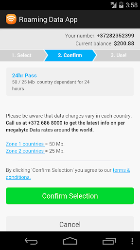 Please note that Roaming Data App will only work on international Data sim cards that begin with 37282 numbers.