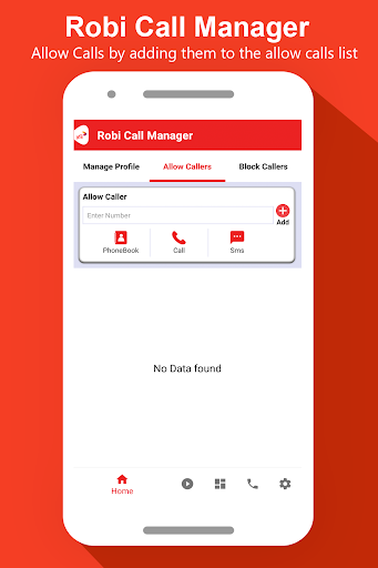 This is an important feature provided by Robi on Call manager application. By using this feature, an App user can define its white-list (White-list means – numbers s/he wants to receive calls from), rest all number other than white-list shall not be allowed to reach/connect with App user (A-Party).