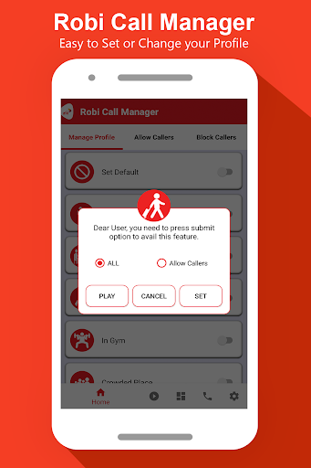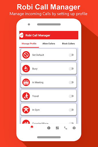 is an unique utility application introduced by Robi Bangladesh for its data enabled users, which allows Robi users to manage their caller list and get rid of unwanted and spam calls whenever they wish to. Using this application, Robi user can set their profile/current status (Profile / Current status like – I am Driving, Watching movie, in Prayer etc.), which will further be announced / played to B-party (Caller) when someone try to reach the user of Call manager Application.