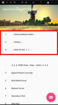 DISCLAIMER: The Application New AdventureRobot Addon for Mcpe is not a game, and does not belong to its creators, all materials are consistent with the principle of fair use of all united states law. if you find a volation of copyright or non-compliance, please contact us immediately.