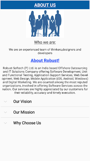 Robust Softech (P) Ltd. is an India based Offshore Outsourcing and IT Solutions Company offering Software Development, Unit and Functional Testing, Application Support Services, Web Development, Web Design, Mobile Application (iOS, Android, Windows) and Digital Marketing. We are counted among the most reputed organizations, involved in offering Software Services across the nation. Our services are highly appreciated by our customers for their reliability, accuracy and timely execution.