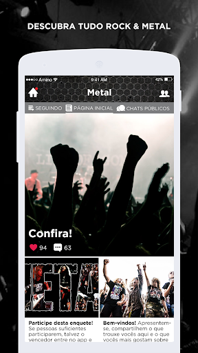 Entre para a comunidade para fãs de Metal que cresce mais rápido na internet. Conheça outros metaleiros, receba as últimas notícias, descubra novas bandas e compartilhe suas ideias. Metal Amino em Português é como um fórum, chat e comunidade feita por fãs de metal para fãs de metal.