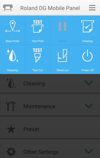 In addition to a built-in control panel, a new Roland DG Mobile Panel allows you to perform control panel functions of the printer/cutters with your existing Smartphone or Tablet using a Bluetooth connection.