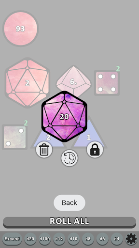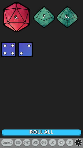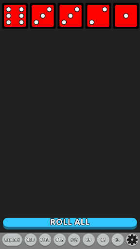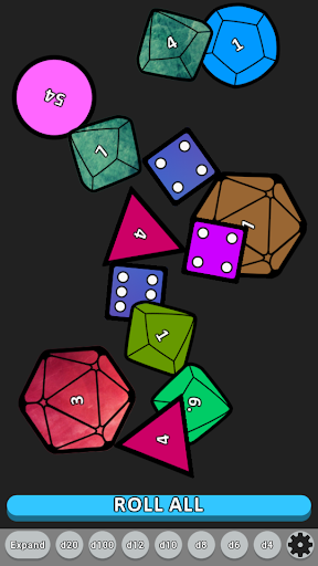 Interact with your dice by pressing the ROLL ALL button, flicking your dice, or shaking your phone to roll them all.