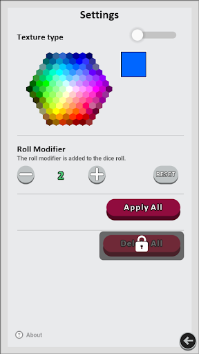 Customize your dice with different colors or a texture in the Settings Menu.