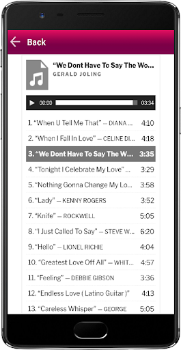 We proudly present a Playlist app for Music Love Song fans. This application presents a collection of the best songs of 1980 1990 which are the most popular of all time. Love Songs MP3 is a streaming mp3 player application that is very easy and simple to use.