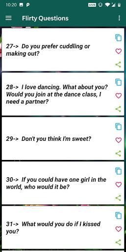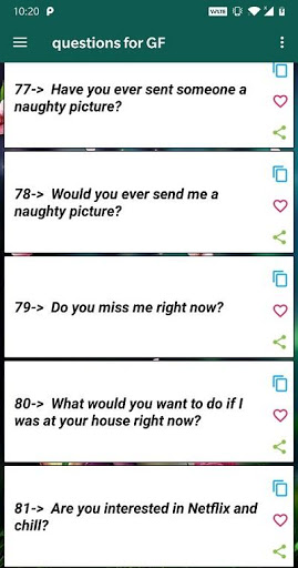 Once you are cozily together, you have the perfect time to ask her your romantic questions. Neither be too cautious nor too stupid, be yourself and ask as if her answers really matter a lot to you. Don't just ask for the sake of asking. Be genuine with her for that will make her feel wonderful.
