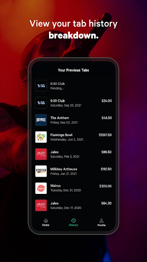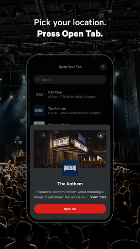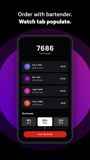 3. Press "Open Tab." Your tab is now open at the bar or restaurant. Order with the bartender or server, and say you're using Rooam. You'll see a live update of each item you order on the app. Once you're ready to go, select your tip and press "Close Tab." That's it! Your bills paid.