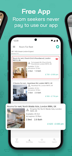 Find a room in your chosen area. The app is free to use for those searching. No charges like some others.