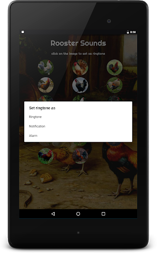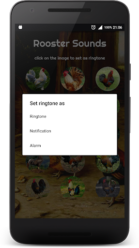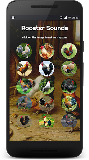 Rooster Alarm and Ringtone Sounds is a great collection of rooster sounds. Those nice sounds can be used as: - Phone Ringtone - SMS Ringtone - Notification Ringtone - Alarm Ringtone