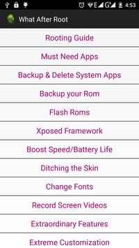 Devices are now android and mostly for all of them Root is available. Many people Getting successful Root for their phones but don't know what to do next? What to do after that? This app has everything you must need after Rooting your android Phone. It will Show off everything how your android will be more powerful after root.