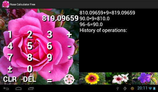 The calculator contains natural pictures of various roses in HD resolution. The photos were taken in professional gardens full of beautiful flowers and plants of various colors and origin. The main purpose of this application is to provide fans of roses with a simple tool that delights senses so you can enjoy the calculator and be in touch with the nature.